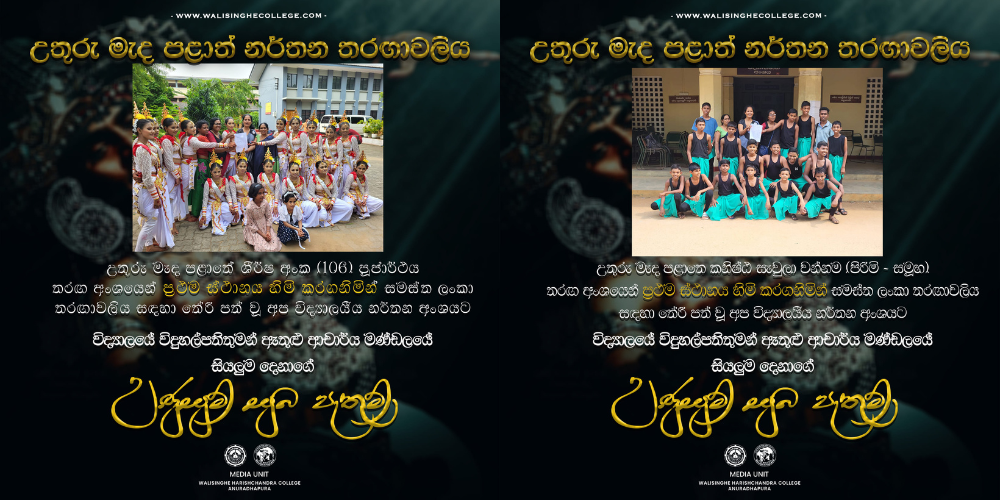 තරඟ අංශ ද්විත්වයෙන්ම ප්රථම ස්ථාන හිමි කරගනිමින් සමස්ත ලංකා තරඟාවලිය සඳහා තේරී පත් වූ අප විද්යාලයීය නර්තන අංශයට, හරිස්චන්ද්රයේ උණුසුම් සුබ පැතුම්...!!